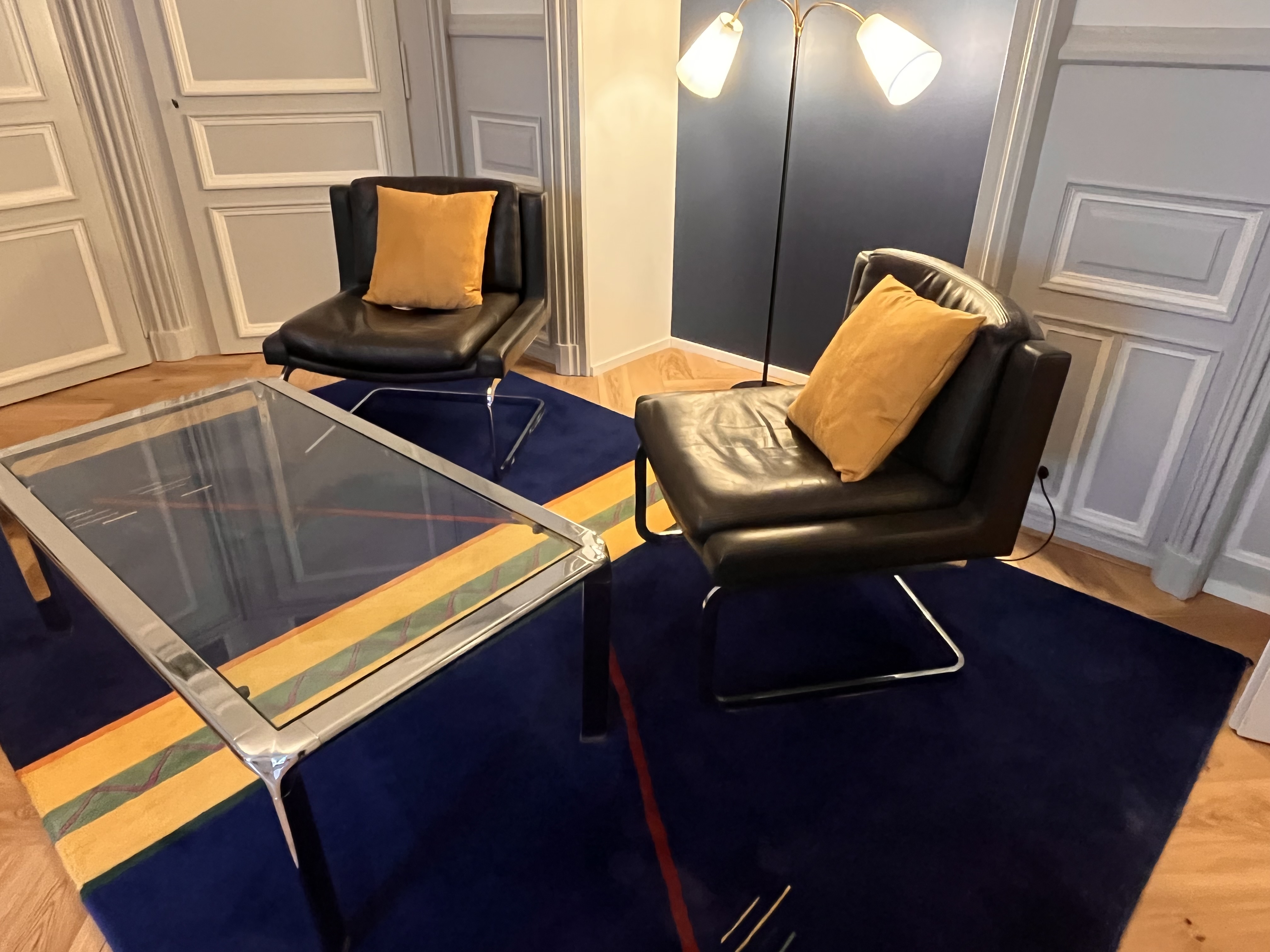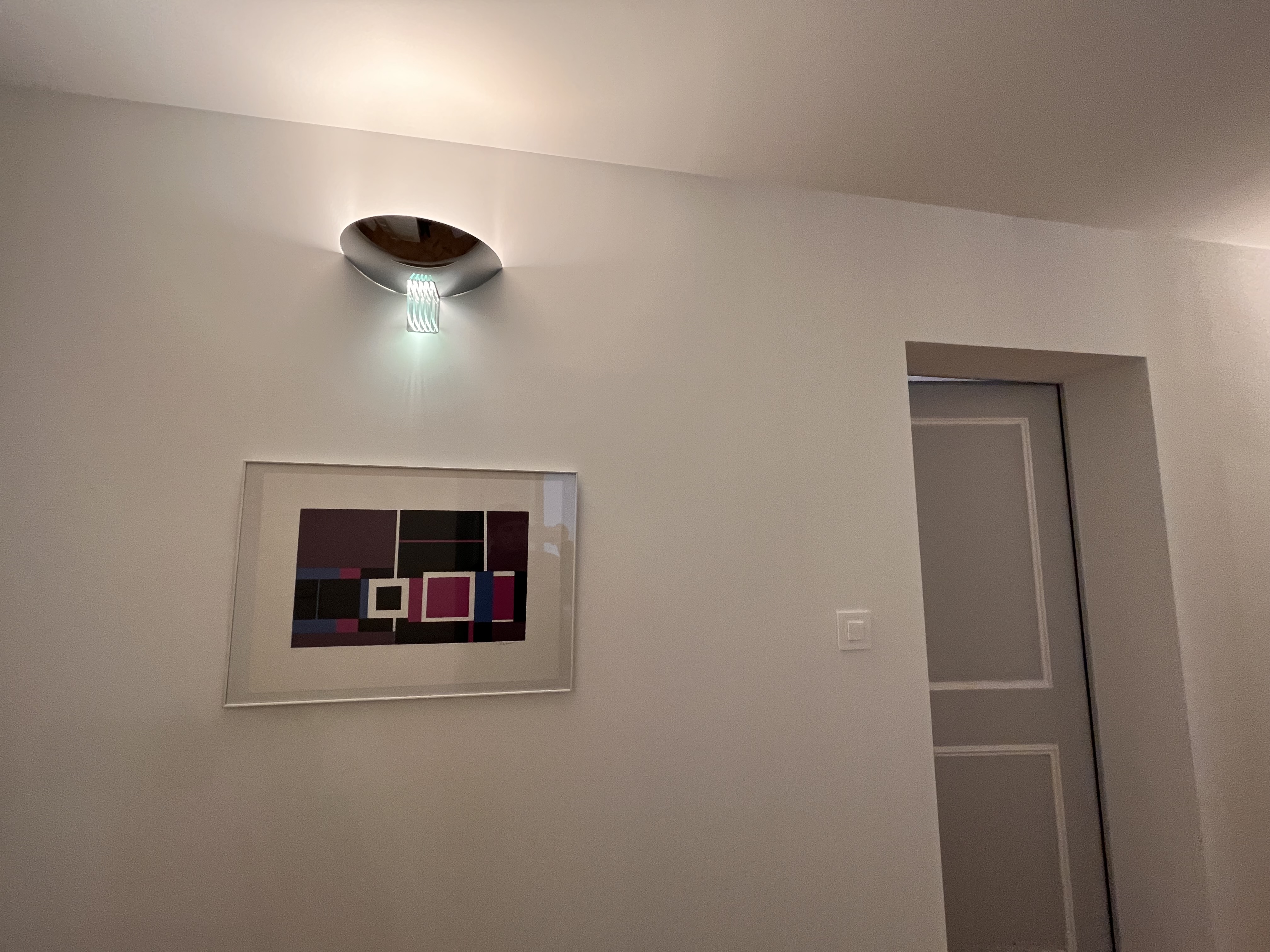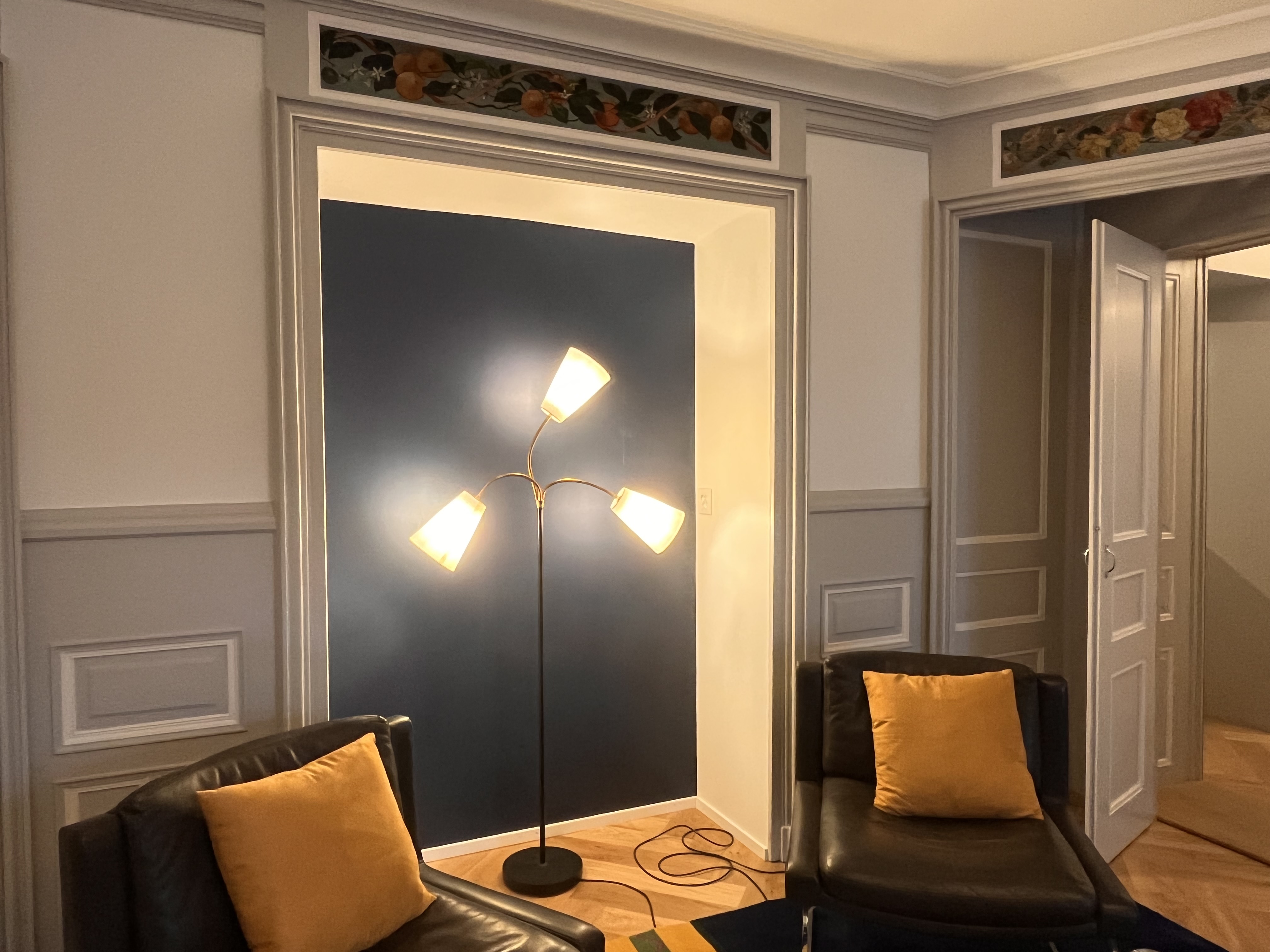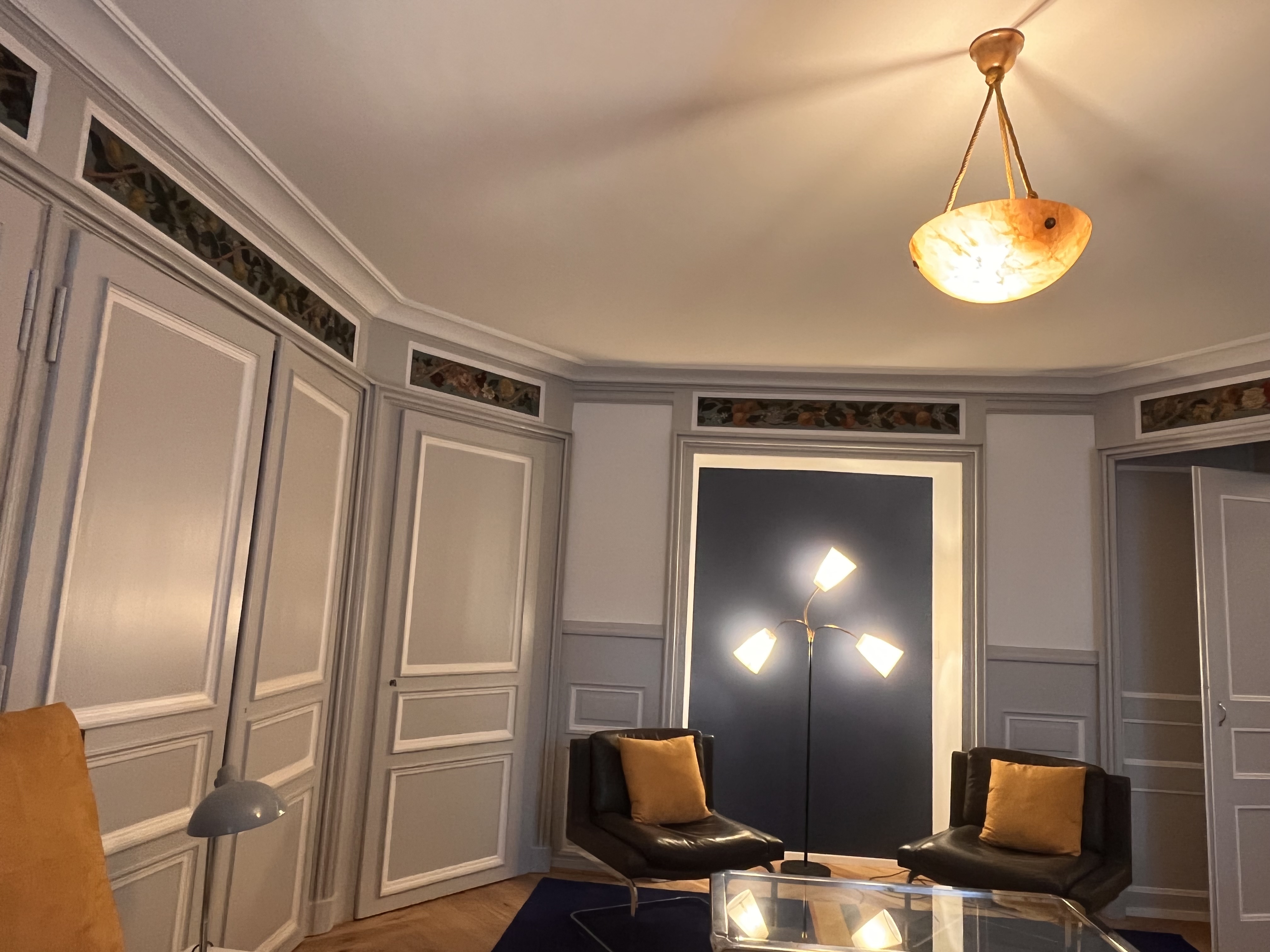 Ses grandes armoires murales ainsi que ses boiseries décoratives lui confèrent un aspect chaleureux et authentique.