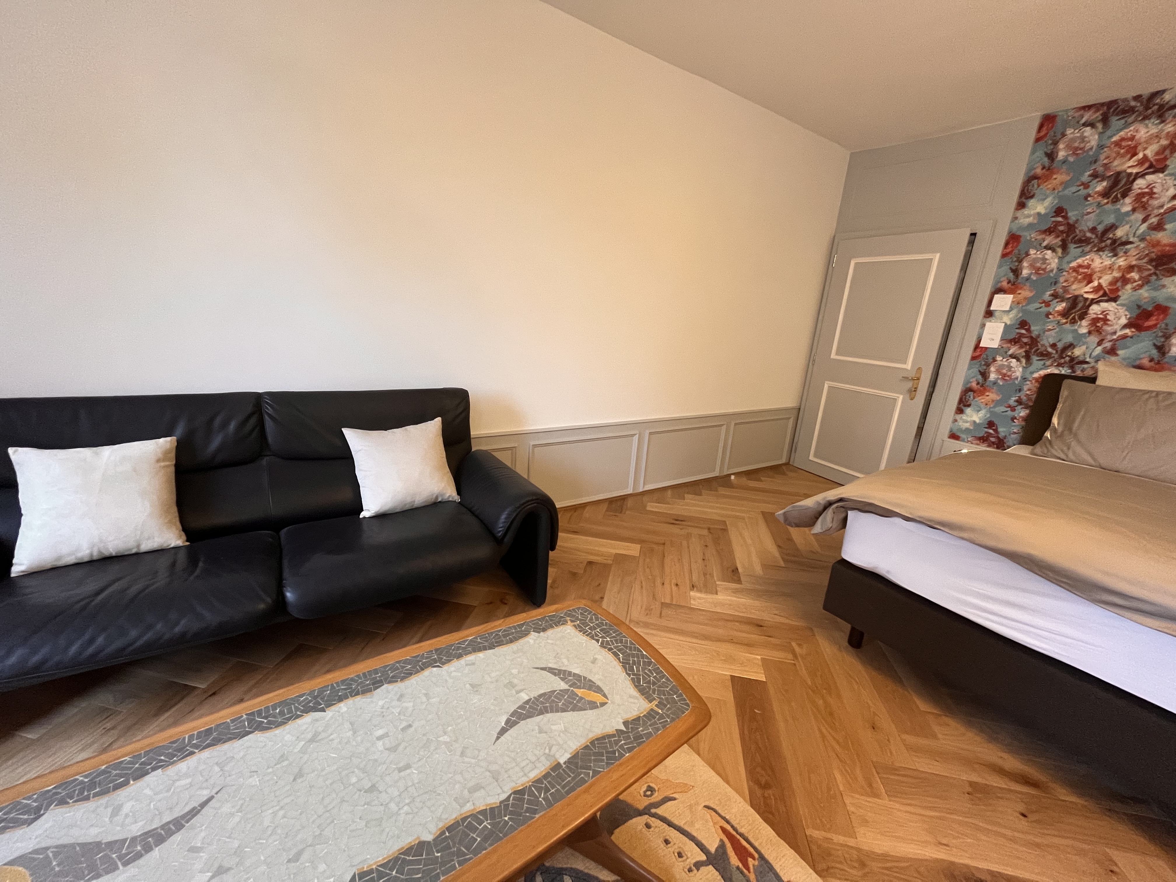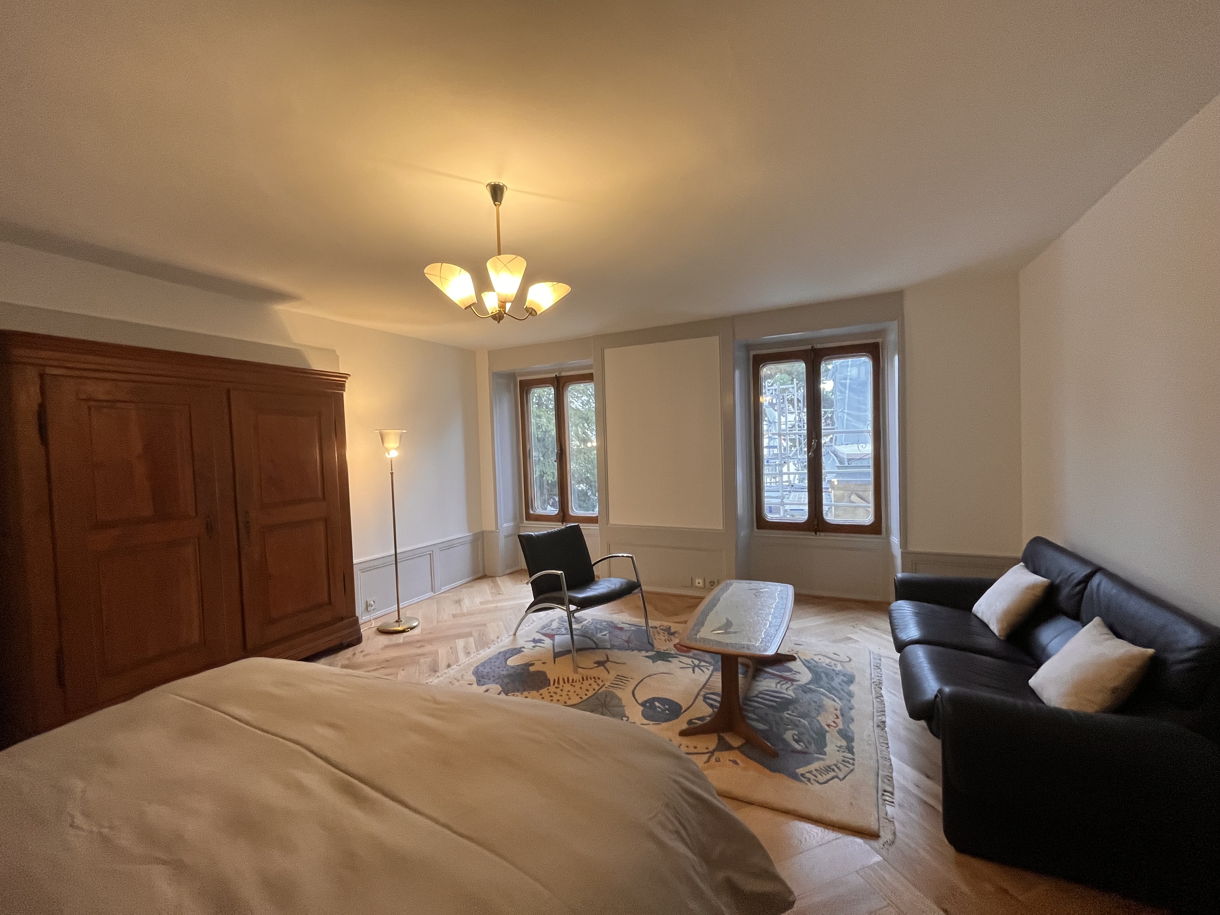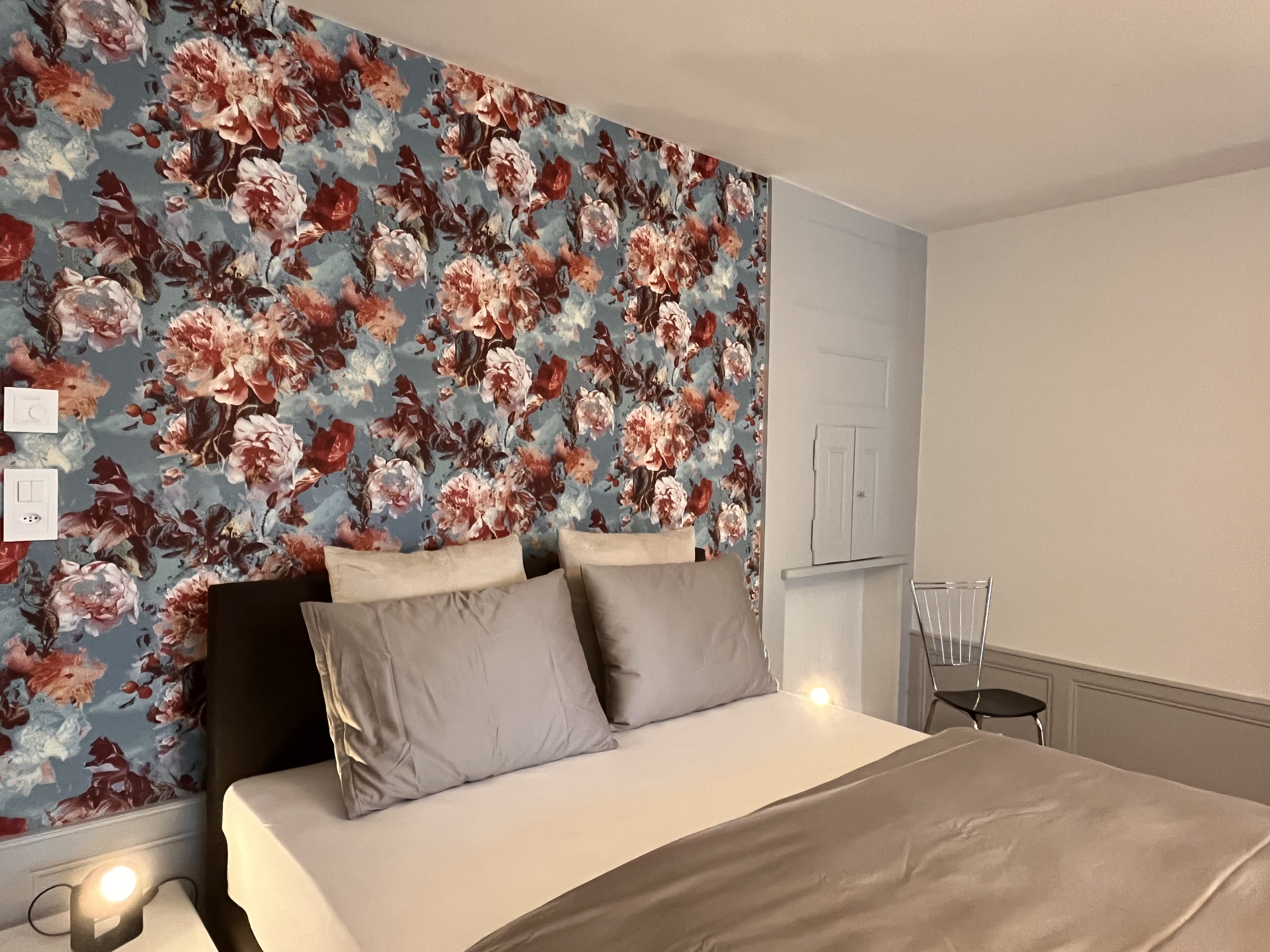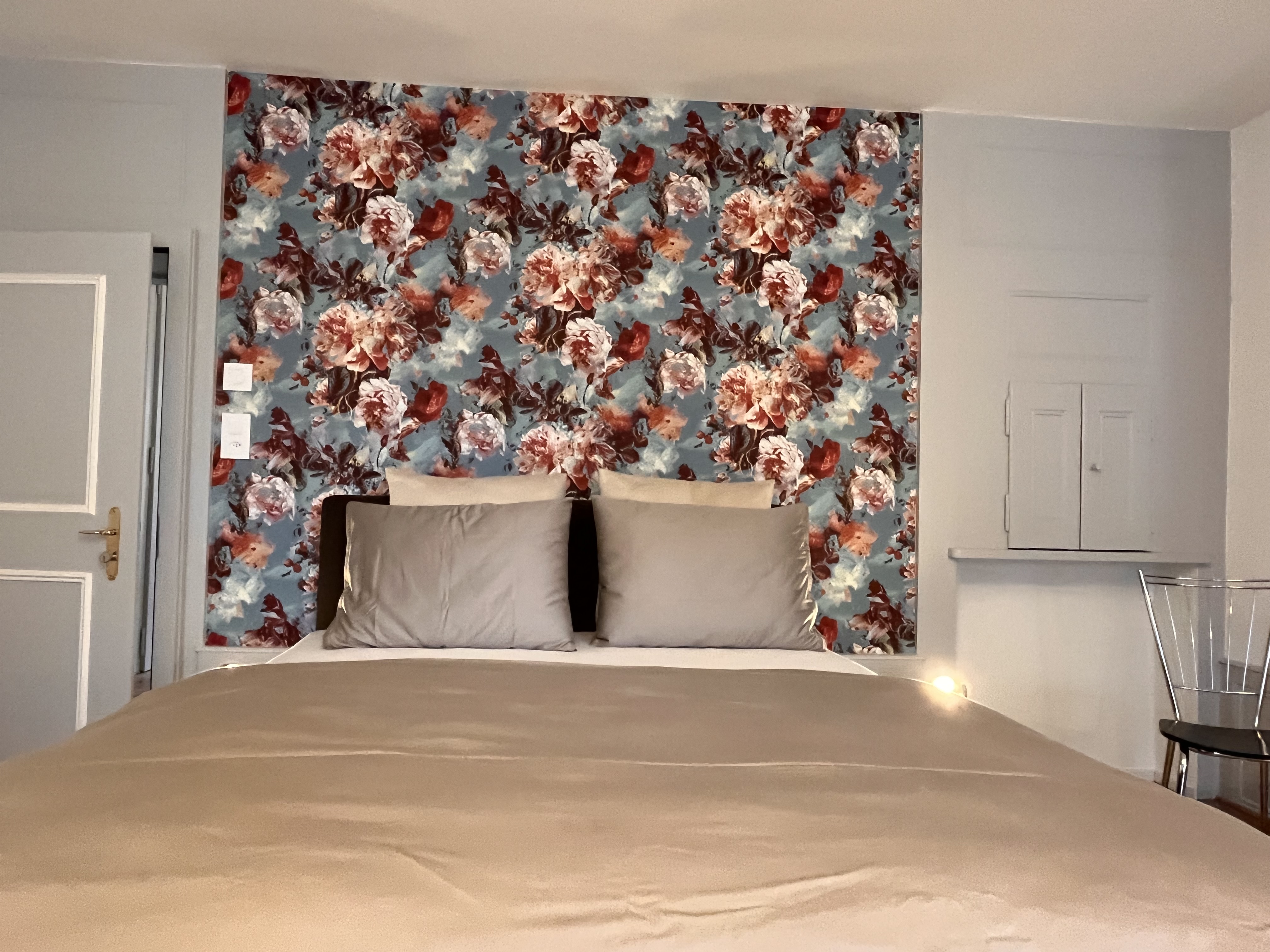 Cette chambre de 28m² aux belles proportions, est située au premier étage. Ses deux fenêtres lui confèrent un aspect lumineux et agréable.