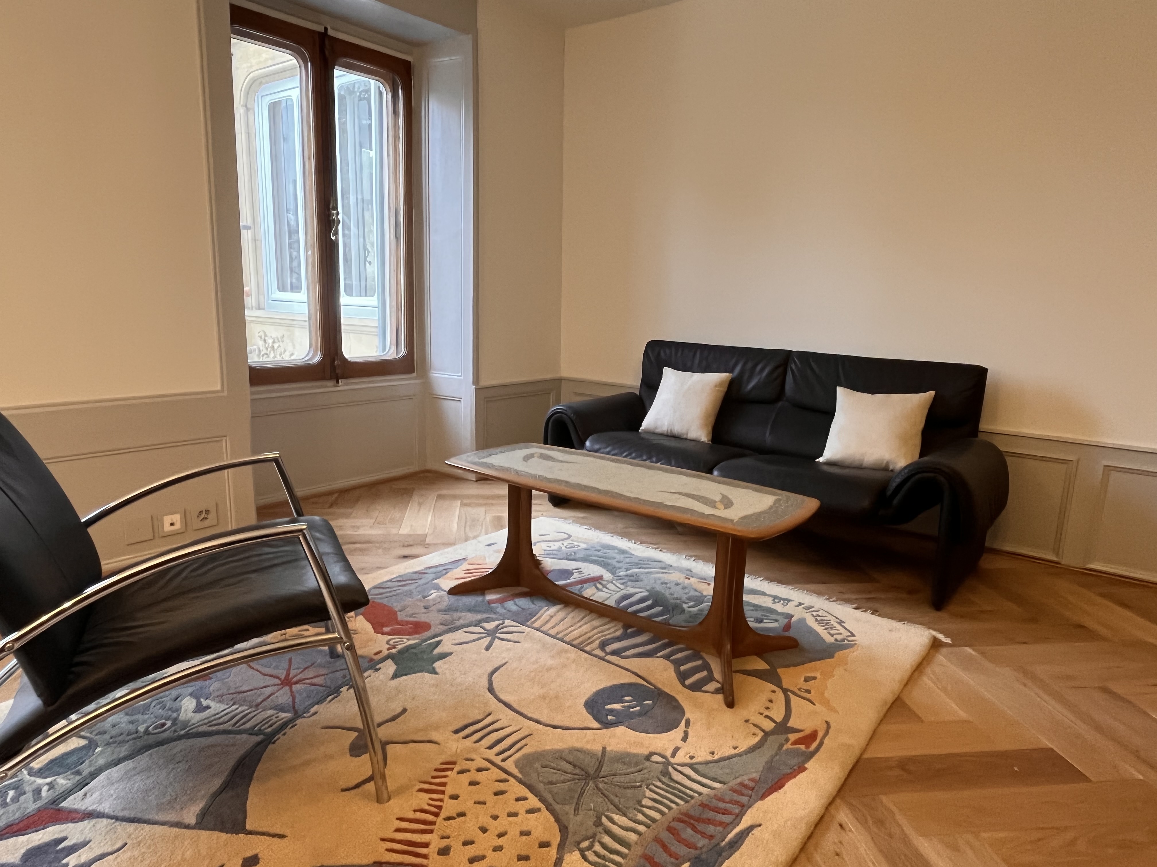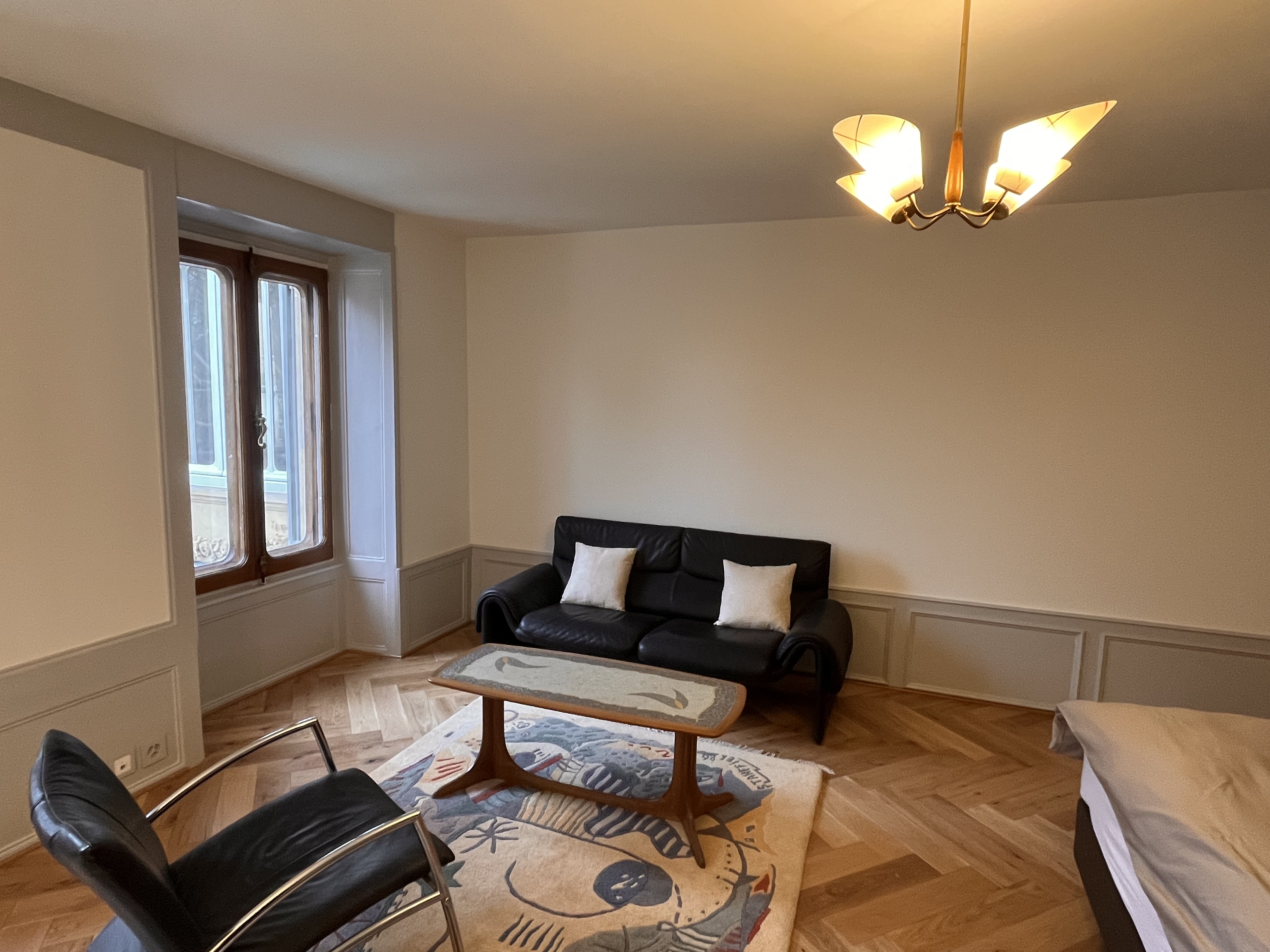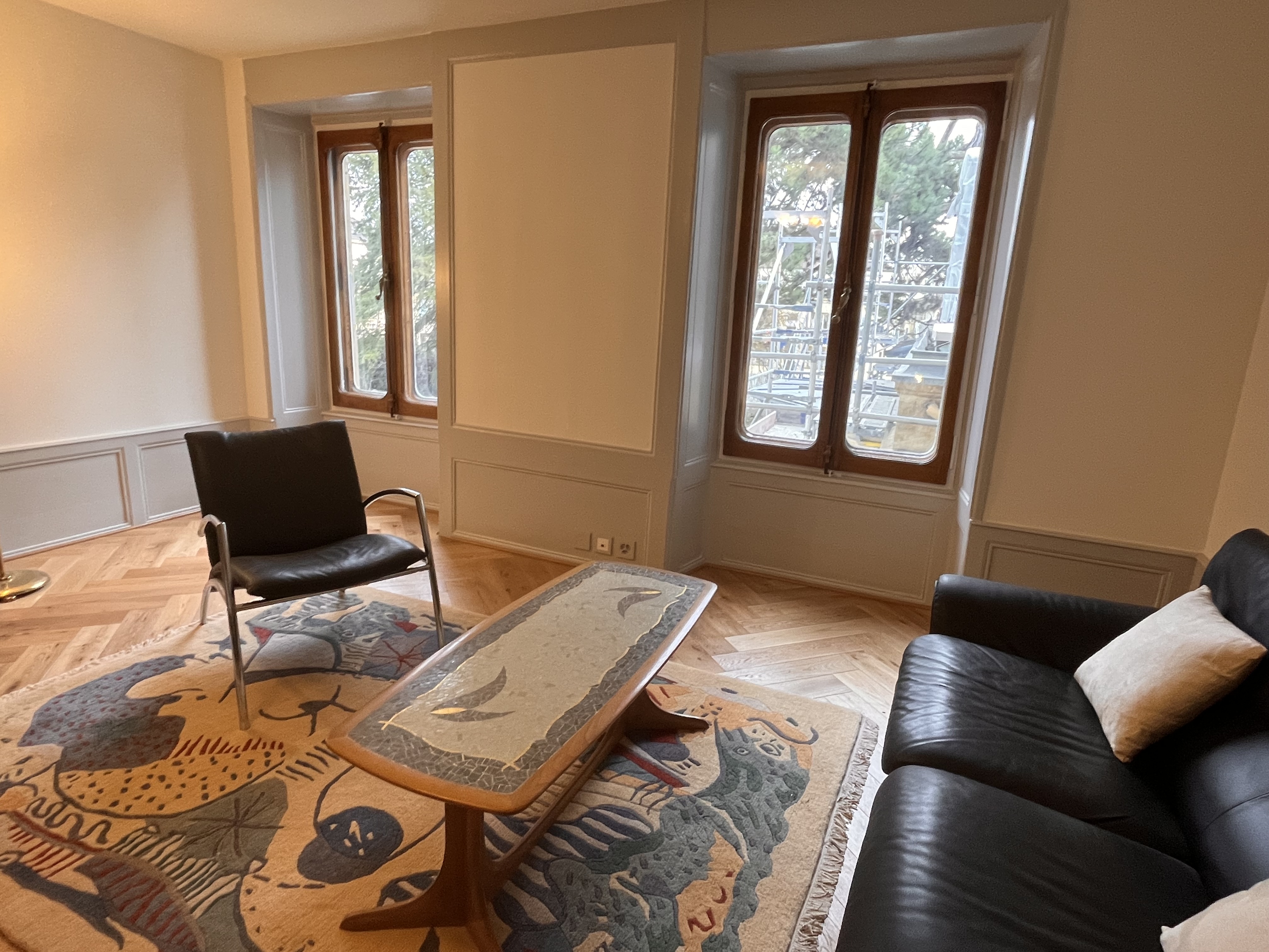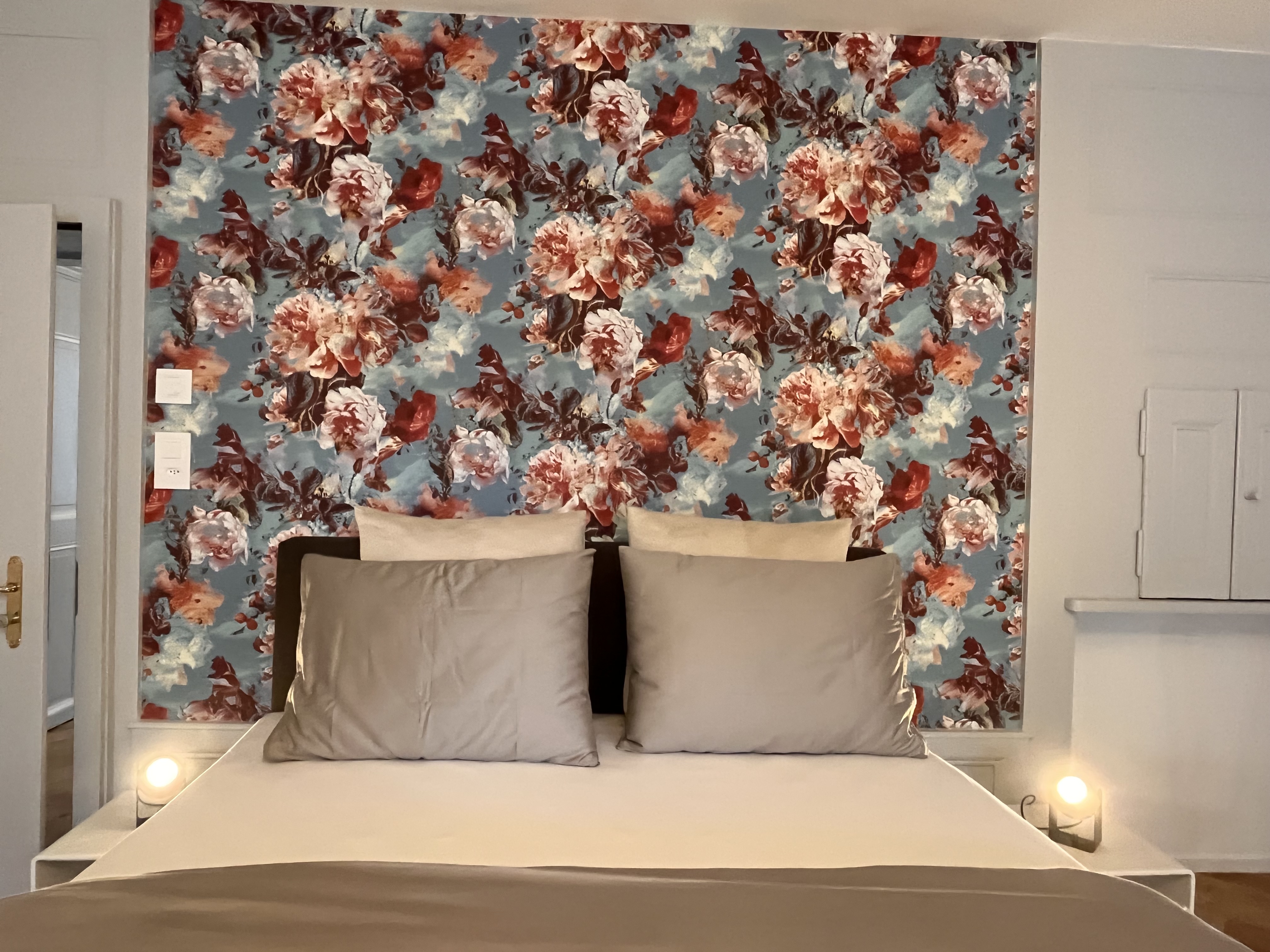 Cette chambre de 28m² aux belles proportions, est située au premier étage. Ses deux fenêtres lui confèrent un aspect lumineux et agréable.