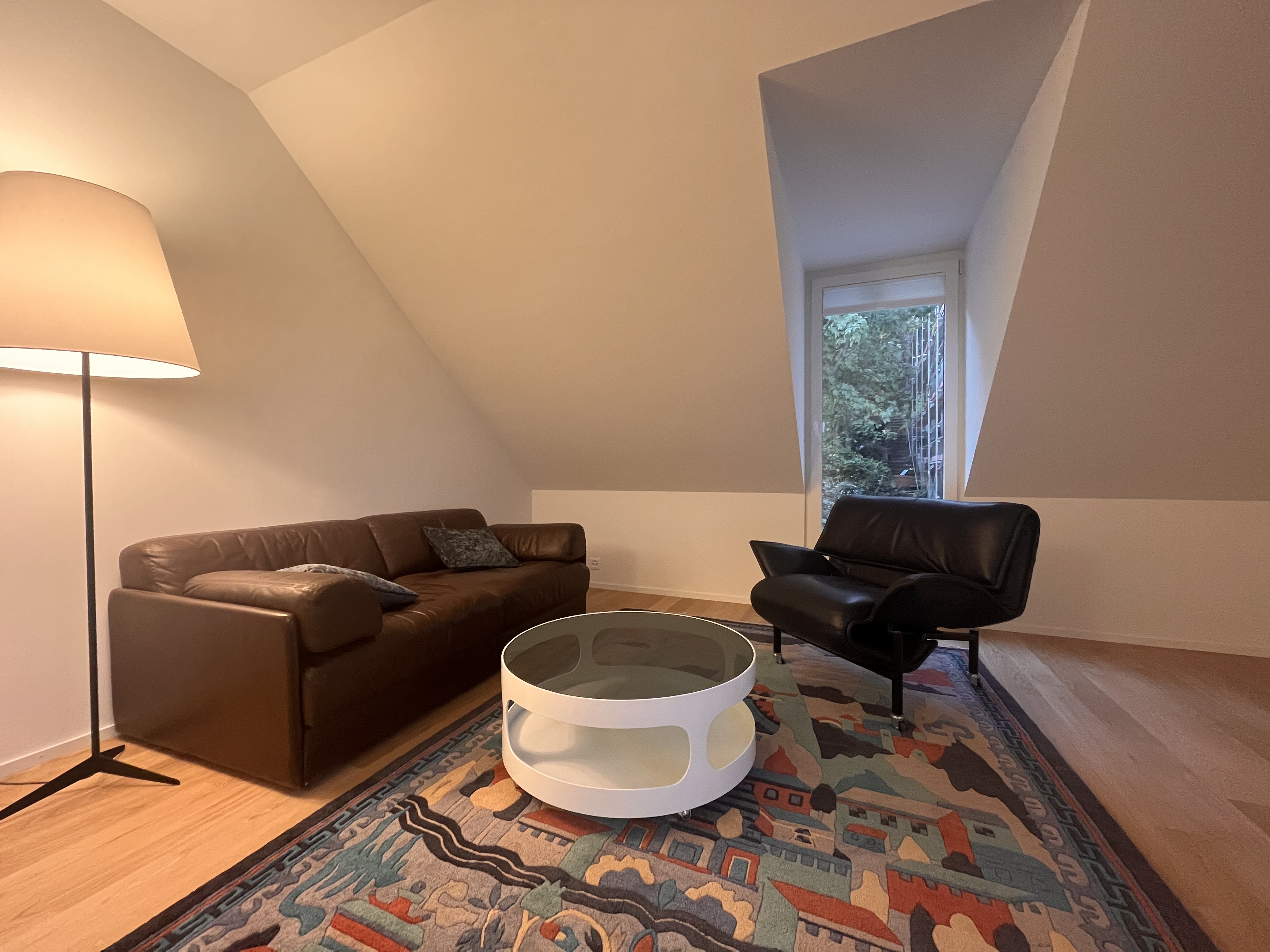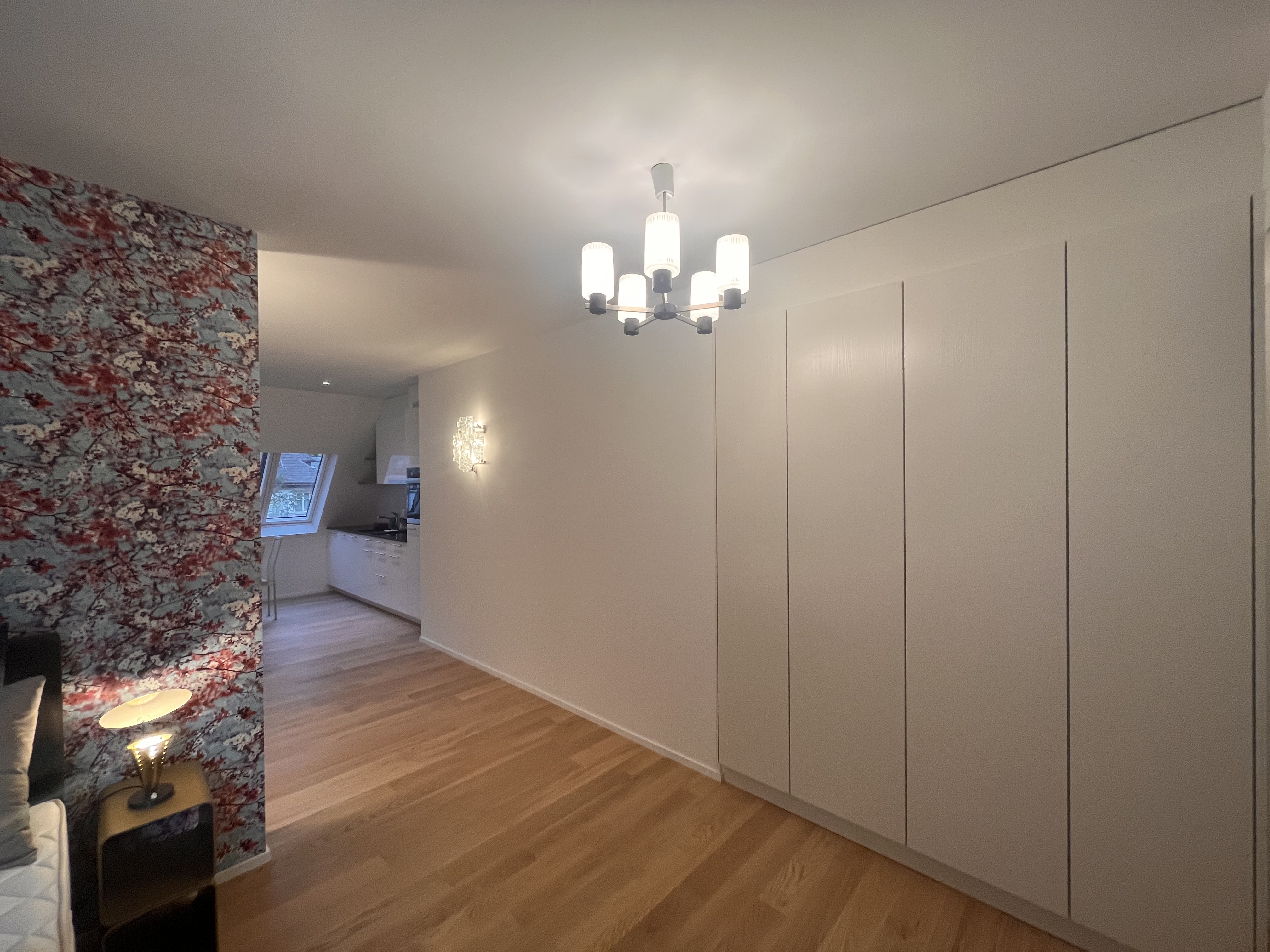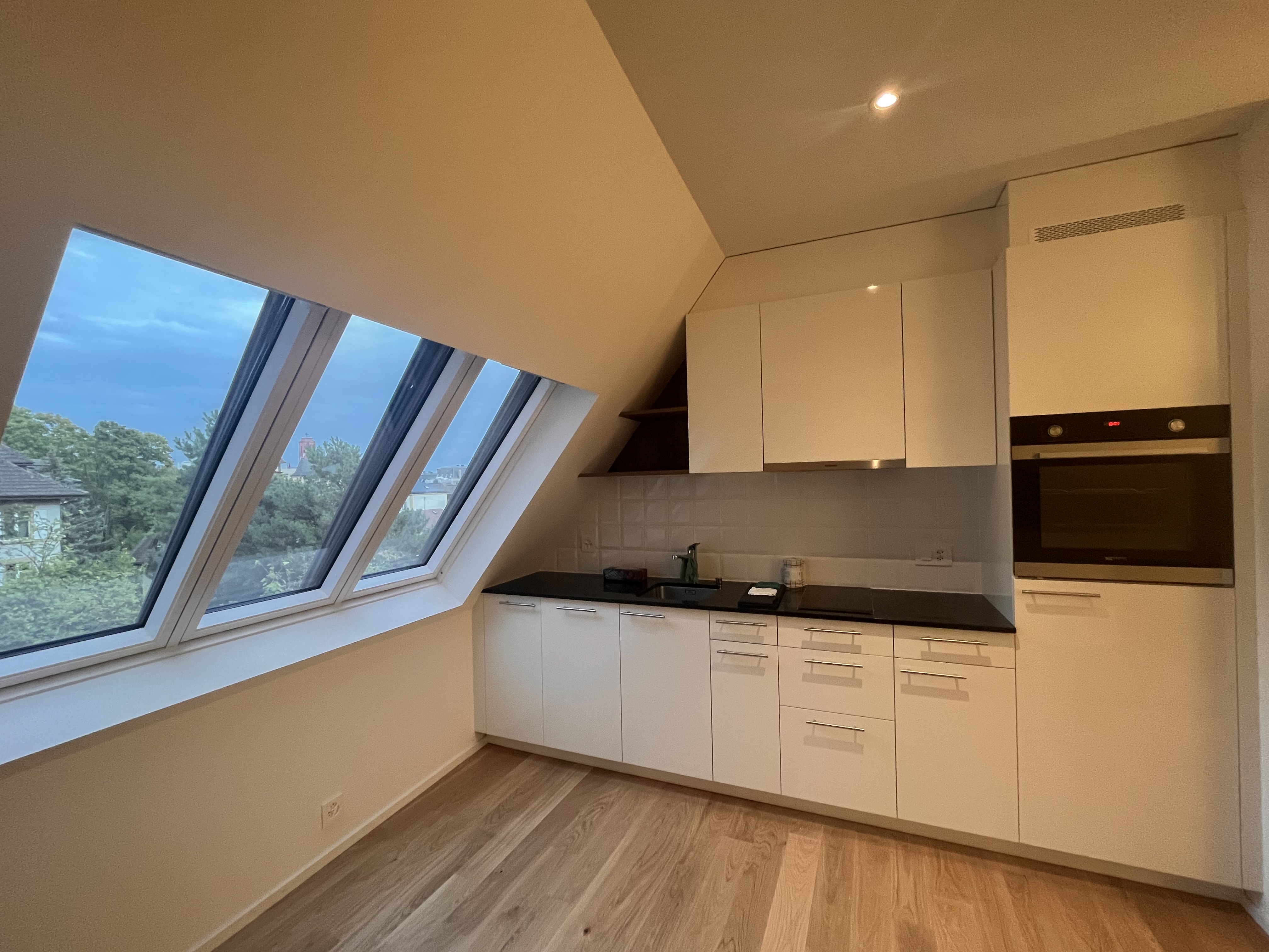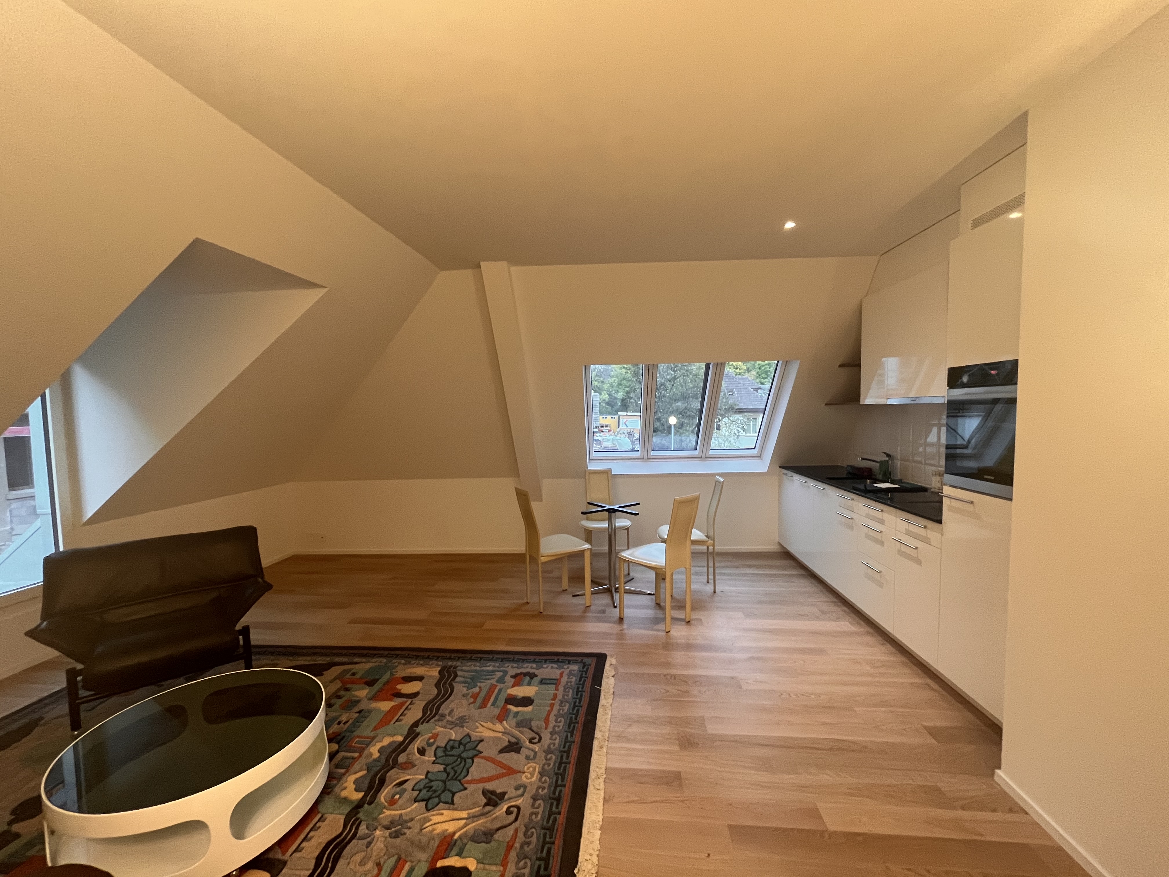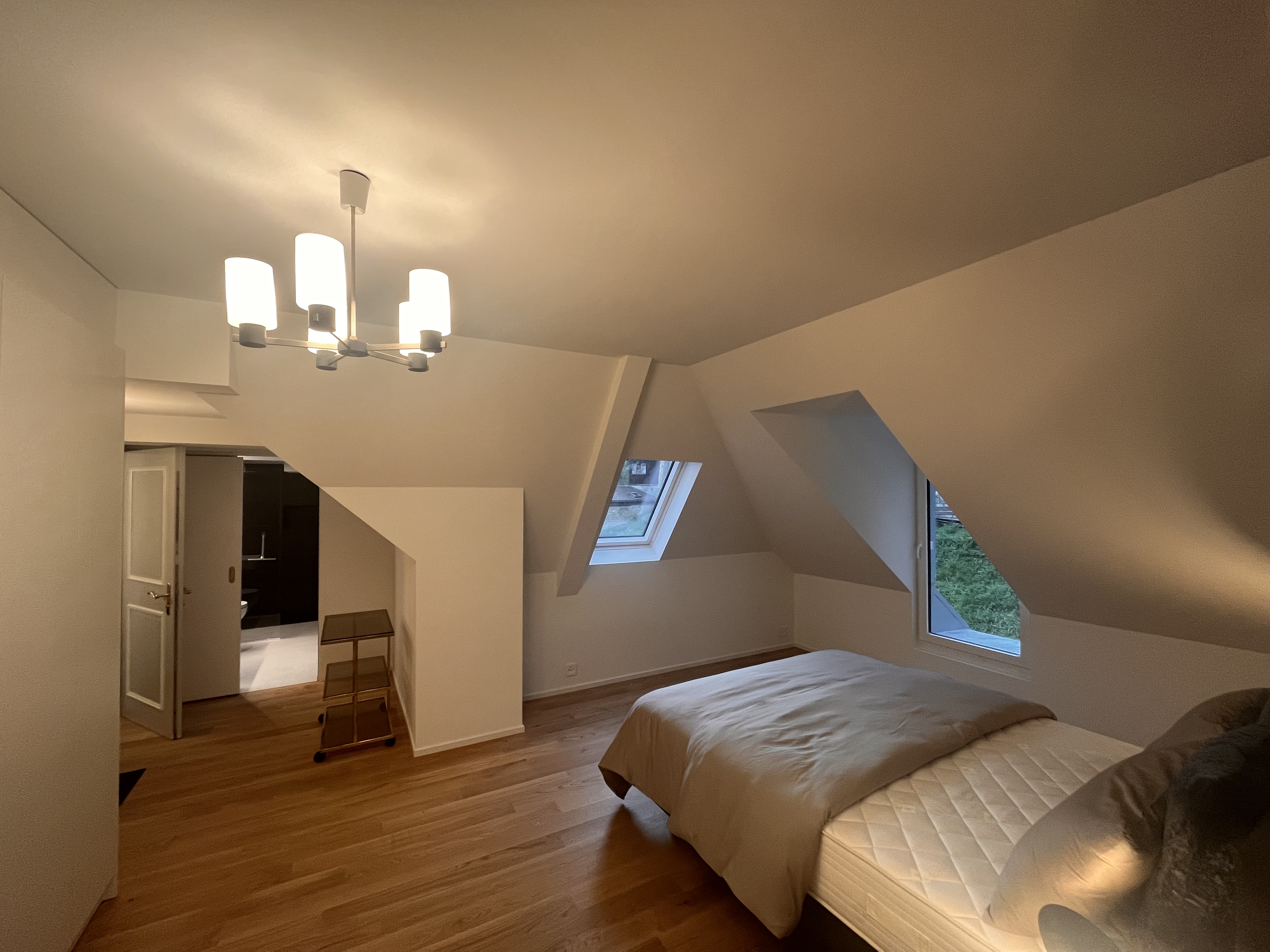 Ce grand studio de 55m² dispose d'une hauteur de plafond considérable, la chambre à coucher est indépendante. Ses grandes fenêtres de toit automatiques lui confèrent beaucoup de lumière.